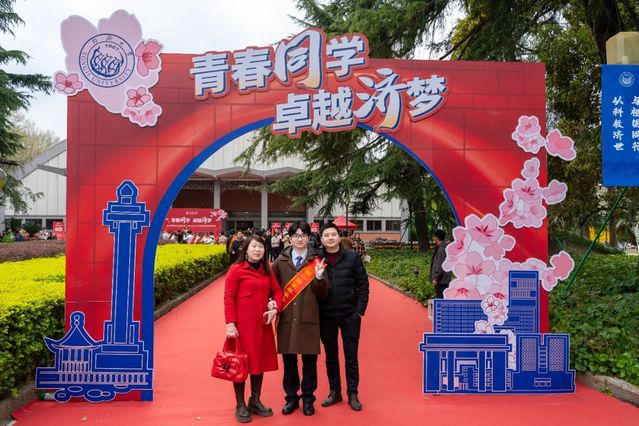 在刚过去的同济大学学业榜样风采展示暨2023-2024学年奖学金颁奖典礼上,林天天邀请父母来到现场共同享受这份喜悦。“感谢学校给予的满满仪式感!”